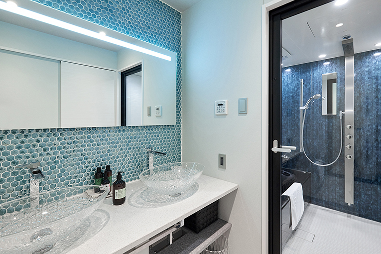ミストサウナ・ジェットバス・コーヒーマシン・冷蔵庫・ミニバー・金庫・ドライヤー・洗浄機付トイレ・バスローブ・バスタオル・タオル・スリッパ・シャンプー・トリートメント・ボディウォッシュ・アメニティ類